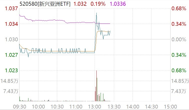 亚太股市多数上涨,印度SENSEX30指数涨1%,印尼综指涨0.87%。新兴亚洲ETF(520580)午后直线拉升股票配资安全,伴随成交量明显放大。行情数据显示,近4个交易日,新兴亚洲ETF(520580)获资金净申购近4800万元。